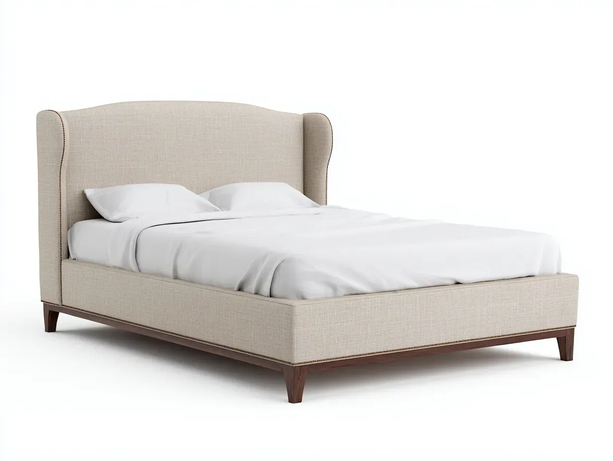 Esta cama doble tapizada ofrece una presencia elegante y equilibrada para dormitorios principales o habitaciones de invitados. Su cabecero alto con líneas suaves aporta una estética acogedora y refinada, mientras que la estructura elevada sobre patas de madera facilita una imagen ligera y ordenada en el espacio.