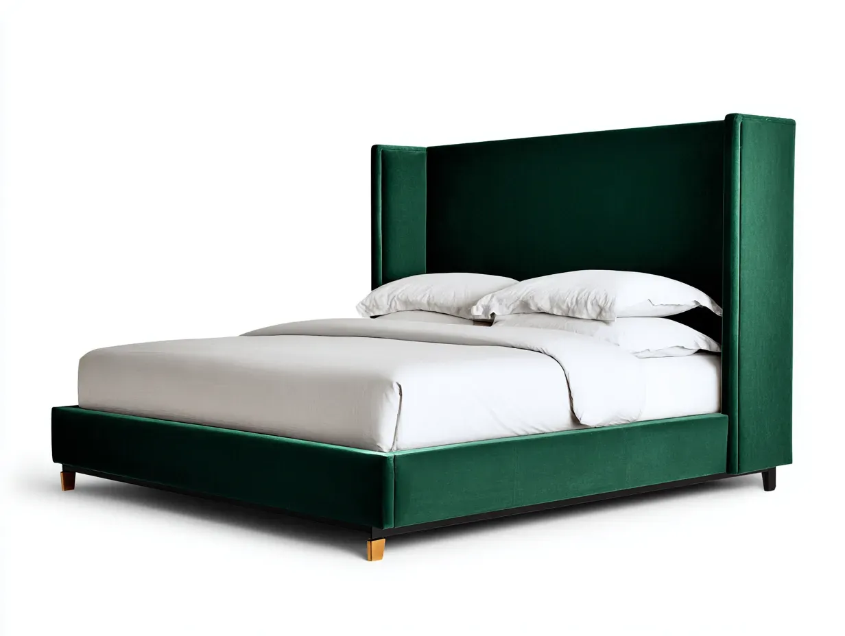 Esta cama doble tapizada ofrece una presencia visual sólida y refinada, pensada para convertir la zona de descanso en el punto central del dormitorio. El cabecero alto con laterales envolventes crea una sensación de recogimiento y aporta una estética más estructurada, ideal para interiores contemporáneos, dormitorios de inspiración hotelera o ambientes en tonos neutros. Su perfil limpio y su volumen equilibrado permiten integrarla con facilidad junto a textiles claros, madera natural, iluminación cálida y complementos decorativos sobrios.
