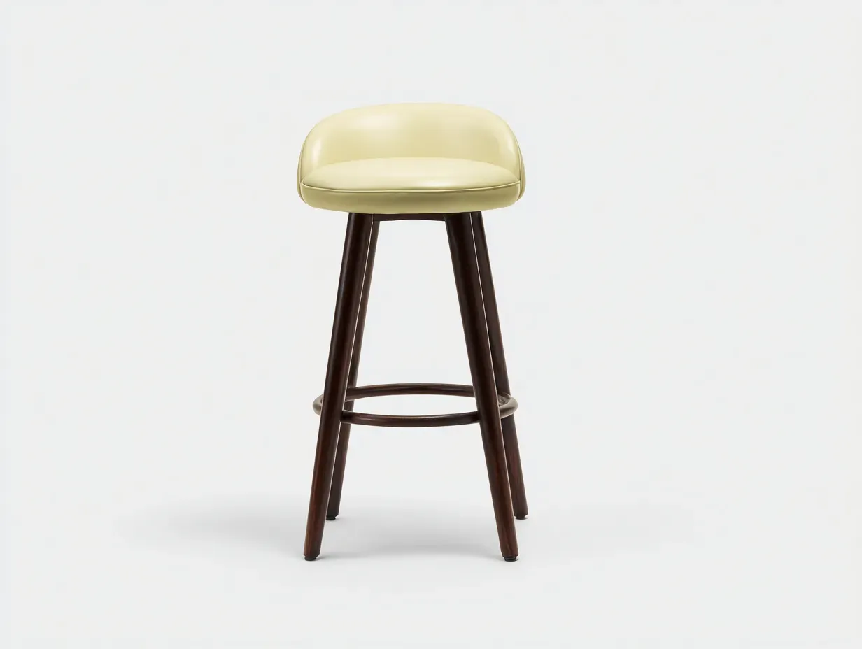 Taburete de bar concebido para aportar una solución de asiento cómoda y una presencia visual equilibrada en barras de cocina, islas centrales o rincones de comedor informal. Su asiento de líneas curvas crea una silueta suave y continua que ayuda a integrar la pieza en interiores residenciales de estilo actual. La combinación entre el tapizado en crema amarillenta y la base en marrón cacao ofrece un contraste sobrio, apropiado para espacios que buscan calidez, orden visual y una estética contemporánea con un matiz refinado.